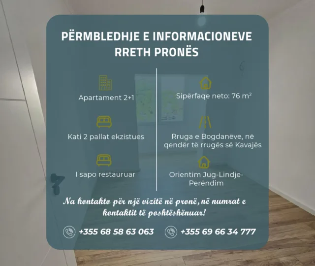 Shitet apartament 2+1 në rrugën e Bogdanëve, në qendër të rrugës së Kavajës, Tiranë.