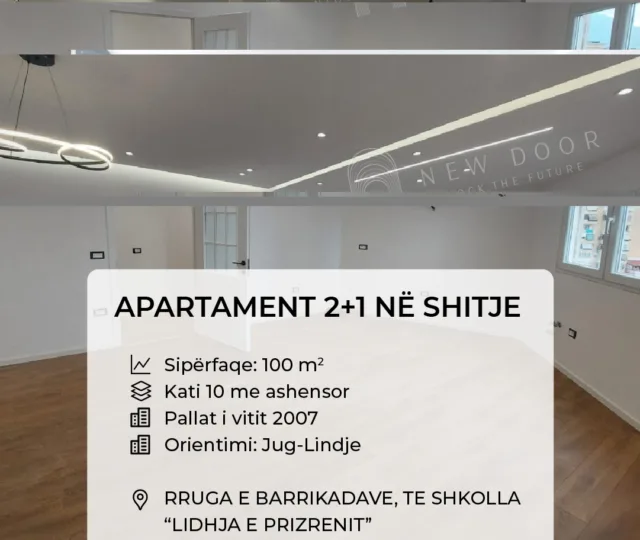 Shitet apartament 2+1 te rruga e Barrikadave, te shkolla “Lidhja e Prizrenit”, Tiranë.