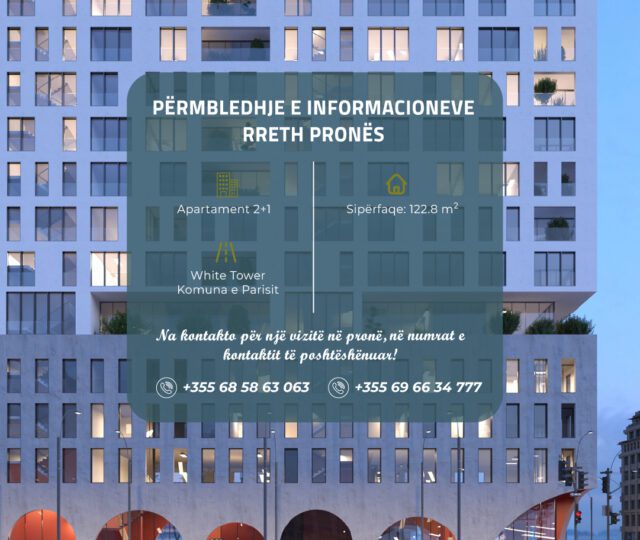 📍 Apartament 2+1 në shitje tek White Tower, Komuna e Parisit, Tiranë.