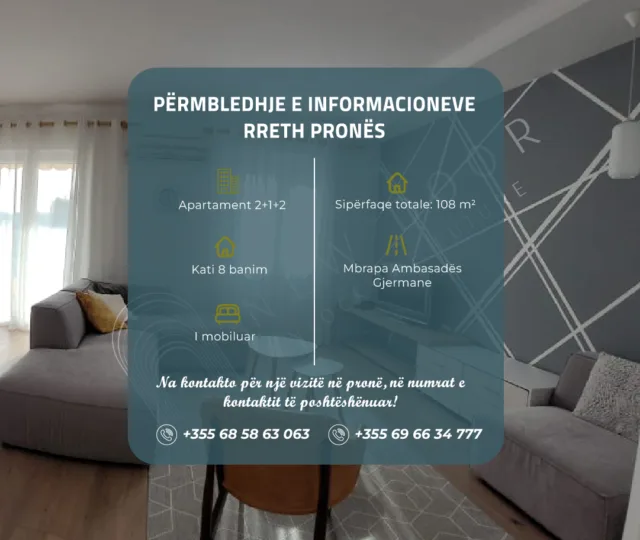 Apartamenti ka sipërfaqe totale 108 metër katror.