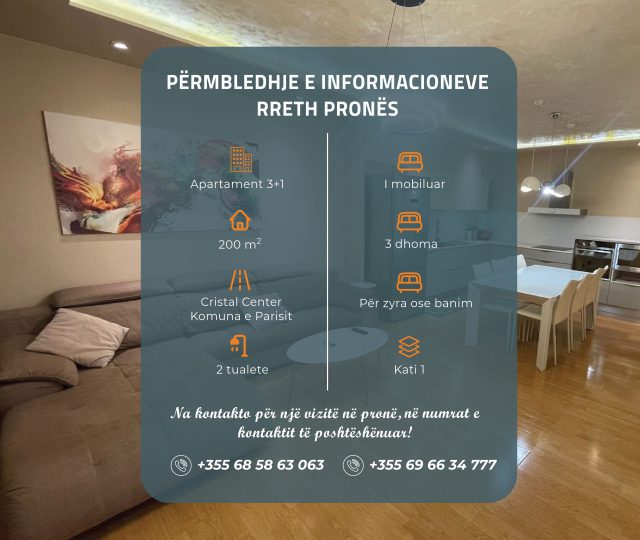 Apartament 3+1 Me Qera – Cristal Center
