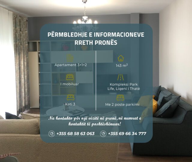 📍 Apartament 3+1+2 me qira te Kompleksi Park Life, Liqeni i Thatë, Tiranë.