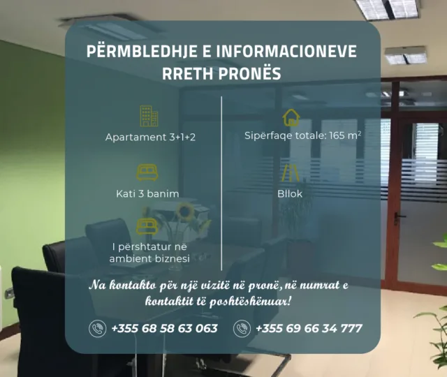 Apartament 3+1+2 në shitje, në zonën e Bllokut, Tiranë.