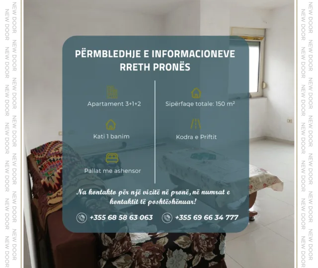 Apartament 3+1+2 në shitje, te Kodra e Priftit, Tiranë.