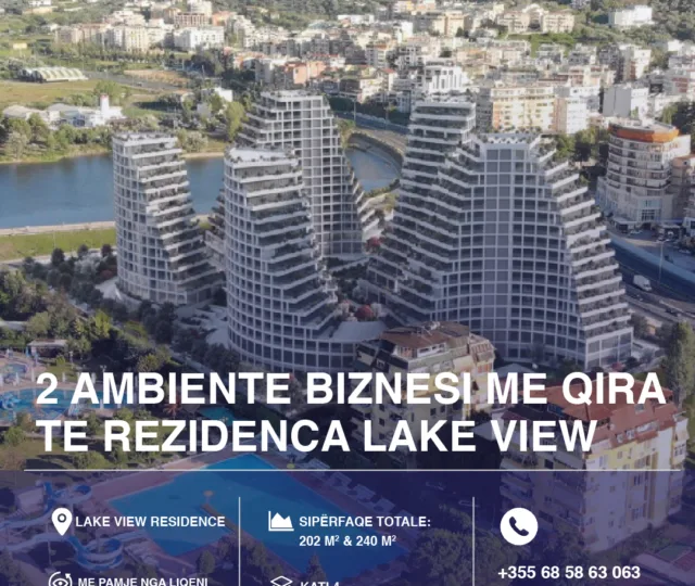 Jepen me qira 2 ambiente biznesi te rezidenca Lake View, te Liqeni Artificial, Tiranë.