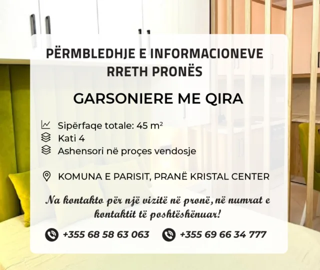 📍 Jepet me qira garsoniere te Komuna e Parisit, pranë Kristal Center, Tiranë.
