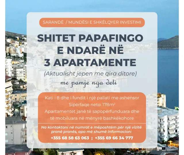 Papafingo e ndare ne 3 apartamente ne shitje – Sarande
