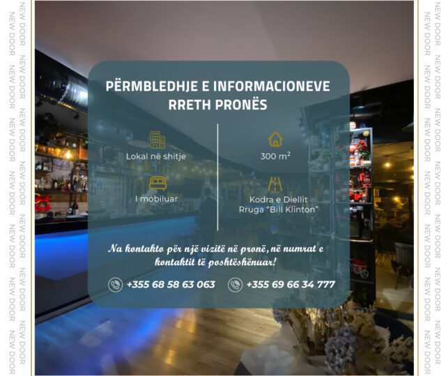 📐 Ambienti aktualisht është lokal me sipërfaqe 300 metër katror dhe totalisht i mobiluar.