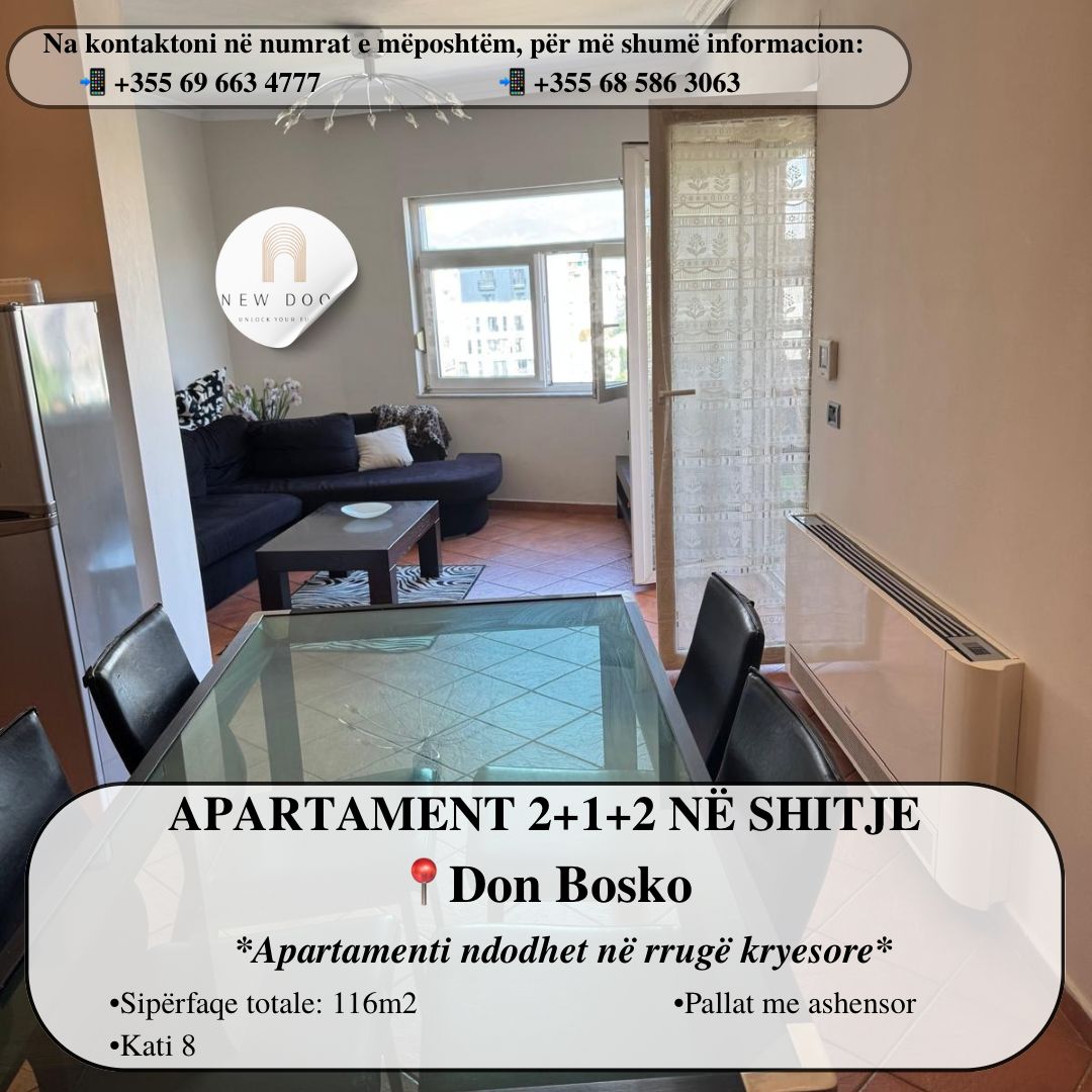 Shitet Apartament 2+1+2 pranë Kryqëzimit të Don Boskos, Tiranë.