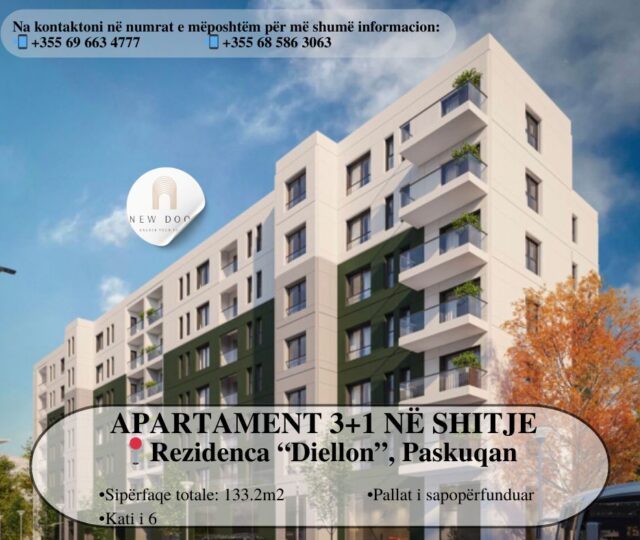 Shitet Apartament 3+1 në rezidencën “Diellon”, Paskuqan, Tiranë.