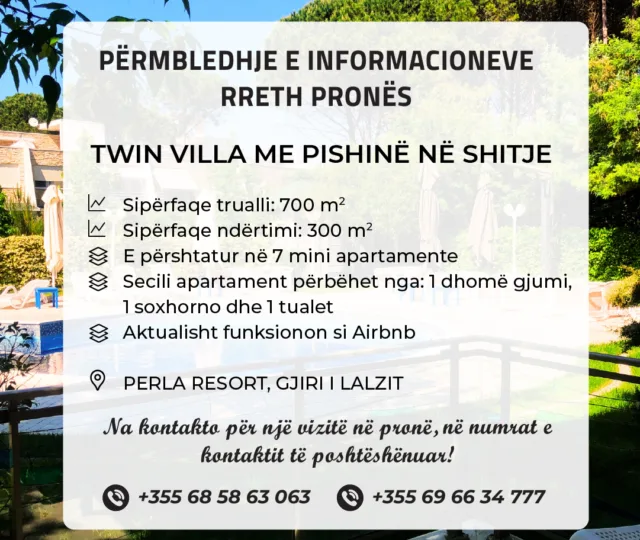 Shitet twin villa me pishinë, te Perla Resort, Gjiri i Lalzit.