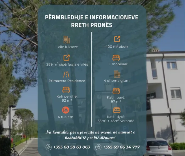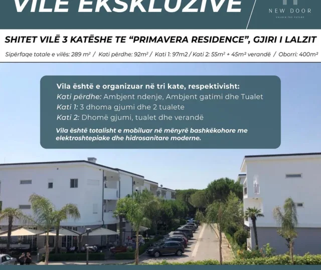 Shitet Vilë Ekskluzive 3-katëshe te “Primavera Residence”, Gjiri i Lalzit