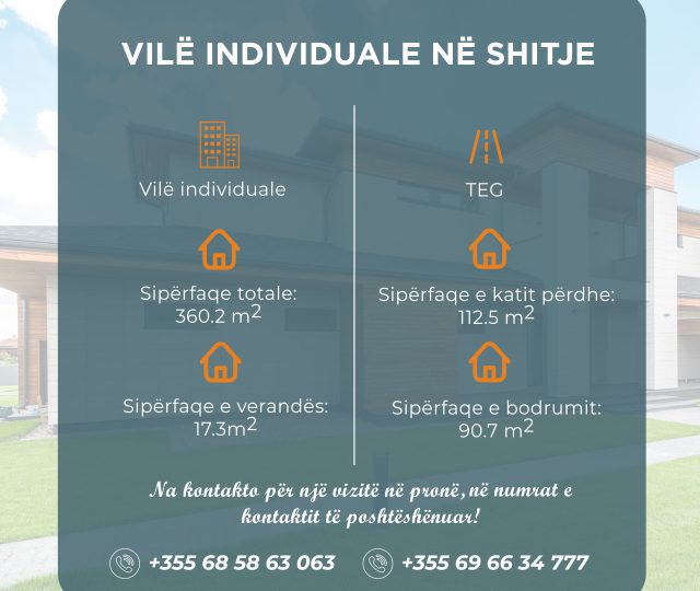 📍 Vilë individuale në shitje afër TEG, Tiranë.