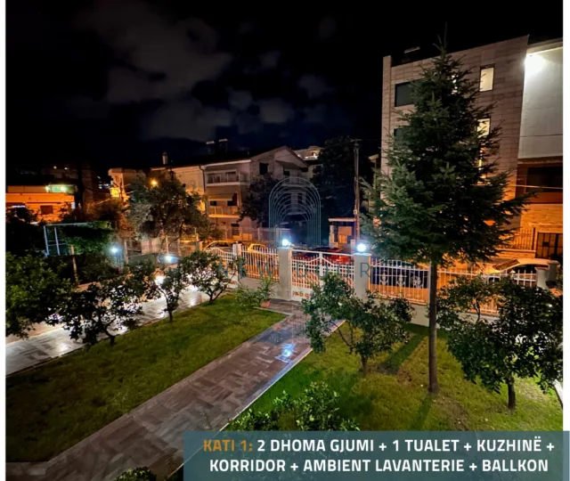 Kati i parë i vilës ka 2 dhoma gjumi, 1 tualet, kuzhinë, korridor, ambient për lavanterinë dhe ballkon.