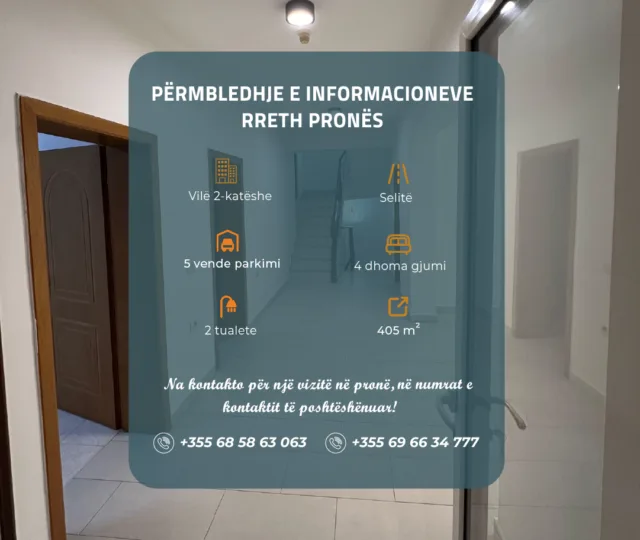 Vila është me 2 kate me sipërfaqe 260 metër katror + një dhomë në papafingo.