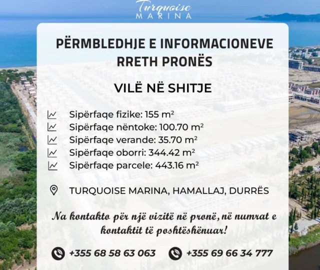 Vilë në shitje, te Turquoise Marina, Hamallaj, Durrës.