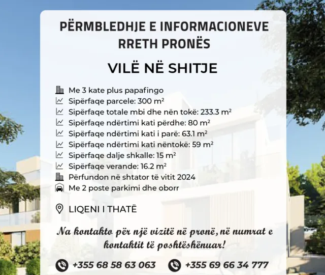 – Sipërfaqe totale mbi dhe nën tokë: 233.3 m²