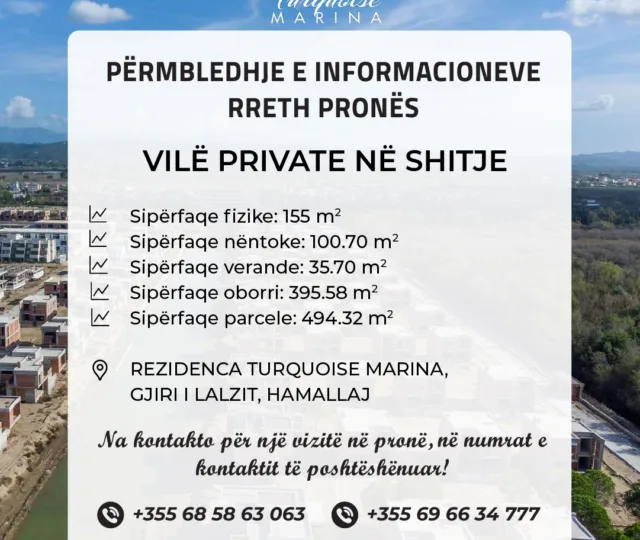 Vilë private 3-katëshe në shitje, në rezidencën “Turquoise Marina”, në Gjirin e Lalzit, Hamallaj.